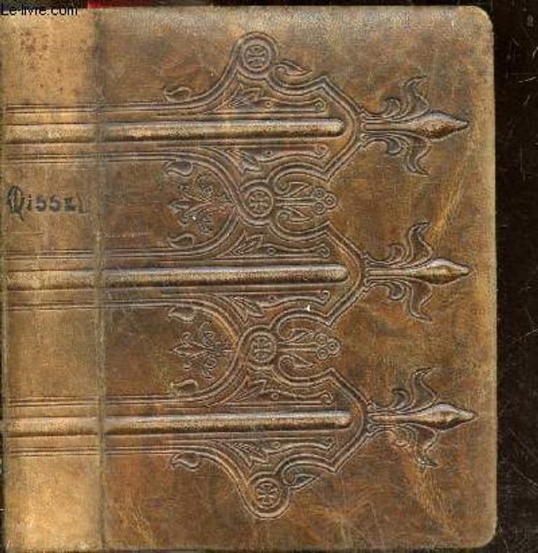 Dijon, 1912, Roux-Marchet & Cie. 512p, rl cartonnage vert bleuté, couv dos et chasse dorés. A l'int plusieurs petites cartes religieuses appartenant à l'ancien propriétaire.