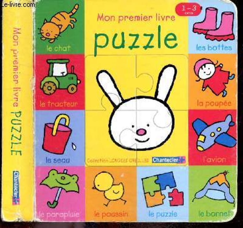 CHANTECLER. 2006. In-12. Cartonné. Etat d'usage, Couv. légèrement passée, Dos frotté, Intérieur frais. 10 PAGES cartonnées, illustrées en couleur, contenant 5 puzzles de 4 pieces chacun (pieces en état d'usage, quelques coins frottés, une piece légèrement abimée & reparée a l'adhésif) - Charnière intérieure fendue/ dos fané - Coins / coiffes frottées. . . . Classification Dewey : 843.0692-Livres d'enfants