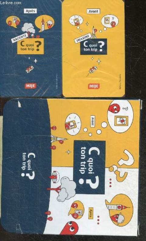 MIJE SPECIALISTE DU VOYAGE SCOLAIRE EDUCATIF, ASSOCIATION RECONNUE D'UTILITE PUBLIQUE / VALOREMIS EDITIONS. NON DATE. In-12. En feuillets. Etat d'usage, Couv. convenable, Dos satisfaisant, Intérieur frais. 2 jeux de cartes Questions (55 cartes par jeu - 100 questions par jeu), encore sous blister, illustrées en couleur - Dans un emboitage cartonné, en état d'usage (coins légèrements abîmés). . . . Classification Dewey : 370-Education