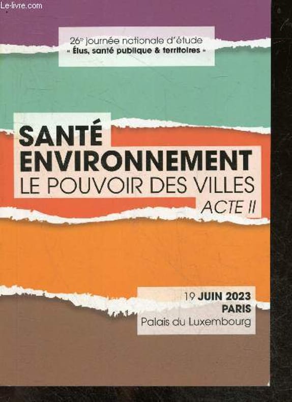 "Sante environnement : Le pouvoir des villes, Acte II, 19 juin 2023, Pairs, Palais du Luxembourg - 26e journee nationale d'etude ""Elus, sante publique & territories"" - reverdir les villes opportunites & risques, comprendre ses obligations en matiere de surveillance de la qualite de l'air interieur, lutte contre les pertubateurs endocrinien : comment agir en 2023 et d'ici 2030, actions concretes a mettre en oeuvre pour illustrer le concept ""une seule santé"" dans les politiques locales, PNSE4 PLAN NATIONAL SANTE ENVIRONNEMENT ... Classification Dewey : 350-Administration publique"