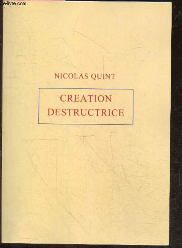 """ Création destructrice de Nicolas Quint suit le parcours d’Alexandre Fleuche, un homme en proie à une crise existentielle profonde. À travers une série de chapitres qui explorent sa vie, de son enfance à son entrée dans le monde professionnel, le roman aborde des thèmes comme la quête de sens et les dilemmes moraux liés au capitalisme ainsi que le poids de la maladie mentale (Alexandre est bipolaire). Après des études en finance, il se retrouve plongé dans un monde où la réussite professionnelle se fait au détriment de l’éthique et du bien-être personnel. Le récit alterne entre des moments introspectifs, des réflexions économiques et des scènes de vie qui mettent en lumière les contradictions de la société contemporaine. "" Classification Dewey : 840.092-XXI ème siècle"
