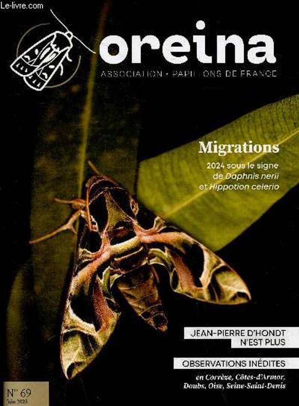 Confirmation de la présence d’Udea hamalis (Thunberg, 1788) en France, suite à une observation dans le Doubs en juin 2024- Jean-Pierre D’Hondt (1945-2025), amateur de couleurs et de papillons- À la recherche du Sphinx du Laurier-rose Daphnis nerii (Linnaeus, 1758)- 2024, une année exceptionnelle pour Daphnis nerii (Linnaeus, 1758) et Hippotion celerio (Linnaeus, 1758) en France hexagonale et en Belgique- Sur Coptodisca lucifluella (Clemens, 1861) en France et quelques taxons également nouveaux pour la Corrèze- Zygaena sarpedon (Hübner, 1790) : une population atteinte de nanisme aux environs de Notre-Dame-de-Londres (Hérault)- Coleophora binderella (Kollar, 1832), Coleophora discordella Zeller,1849 et Coleophora solitariella Zeller,1849, trois espèces nouvelles pour le département des Côtes-d’Armor- Biodiversité en milieu urbain : bilan de l’année 2024 concernant les espèces d’hétérocères nouvellement observées sur le Parc des Beaumonts (Montreuil, Seine-Saint-Denis)- La surprise de la saison 2024 en Picardie : observation d’Hyles gallii (Rottemburg, 1775) dans le Noyonnais // Maradan Jean-François, Pelouard Yoann, Jailloux Adrien, Mothiron Philippe, Drouet Éric, Haxaire Jean, Stoecklin Michel, Duquef Yann Classification Dewey : 70.49-Presse illustrée, magazines, revues
