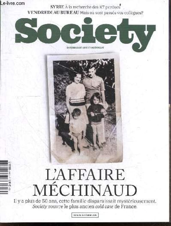 L'affaire Mechinaud : Il y a plus de 50 ans, cette famille disparaissait mystérieusement, Society rouvre le plus ancien cold case de France- Alice David sait des choses que vous ne savez pas- Richard Powers auteur ecolo- Booba/Karis le clash- Mosab Abu Toha comment raconter gaza au reste du monde: a la recherche des K7 perdues- pourquoi et comment les commentaires youtube sous un clip d'aphex twin sont devenue un espace de discussion sans aucun lien avec la musique- Vendredi au bureau: mais ou sont passes vos collegues... Classification Dewey : 70.49-Presse illustrée, magazines, revues
