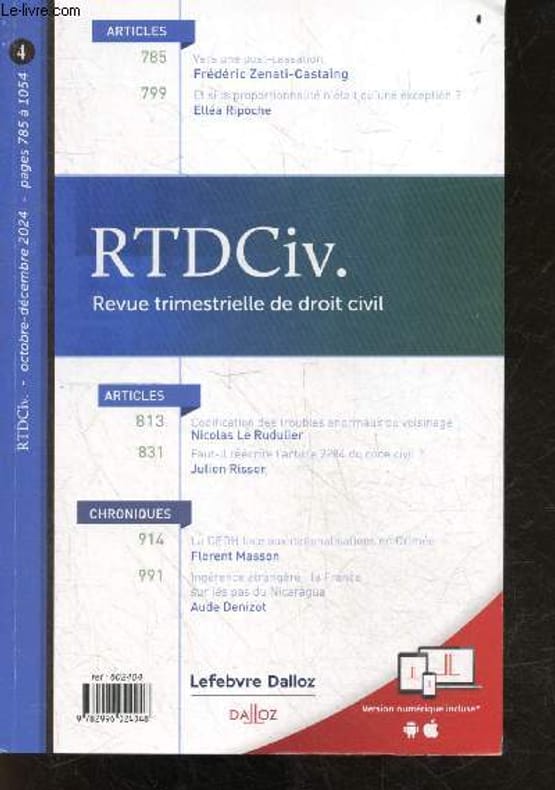 SOMMAIRE : Vers une post cassation par Frederic Zenati-Castaing - Et si la proportionnalite n'etait qu'une exception? par Ellea Ripoche - Codification des troubles anormaux du voisinage par Nicolas Le Rudulier - Faut il reecrire l'article 2284 du code civil? par Julien Risser - La CEDH face aux nationalisations en crimee par Floret Masson - Ingerence etrangere: la France sur les pas du Nicaragua par Aude Denizot ... Classification Dewey : 70.49-Presse illustrée, magazines, revues