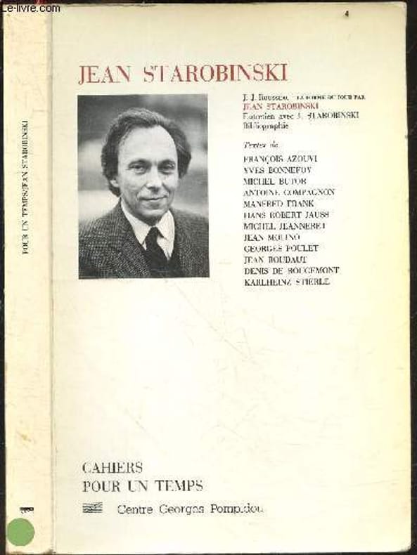 Jean Starobinski - Cahiers pour un temps - J-J Rousseau : la forme du jour par Starobinski, Entretien avec Starobinski, Entretien avec Jacques Bonnet, Georges Poulet: Starobinski & le theme de la distance, Jean Molino: la relation critique ou J.S. dans la critique, Karlheinze Stierle: devoilement de la lecture, Azouvi Francois: histoire des sciences & histoires de mots, Jean Roudaut: la fascination de Sabina Poppaea, Michel Butor: la guerisseuse des regards, Manfred Frank: l'univers singulier du style: quelques remarques relatives a l'hermeneutique de J.S., ... /// MICHEL JEANNERET- DENIS DE ROUGEMONT- COMPAGNON ANTOINE- HANS ROBERT JAUSS- YVES BONNEFOY ... Classification Dewey : 840.091-XX ème siècle