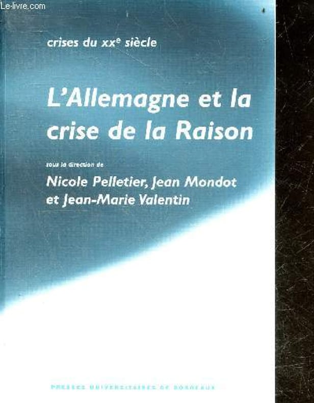 L'Allemagne et la crise de la raison - Collection Crises du XXe siecle - Hommage à Gilbert Merlio - Les critiques de la raison: origines & evolutions, La raison entre defenseurs & critiques, La critique de la critique de la Raison aspects philosophiques / historiques / anthropologiques Classification Dewey : 943-Allemagne, Autriche, Hongrie