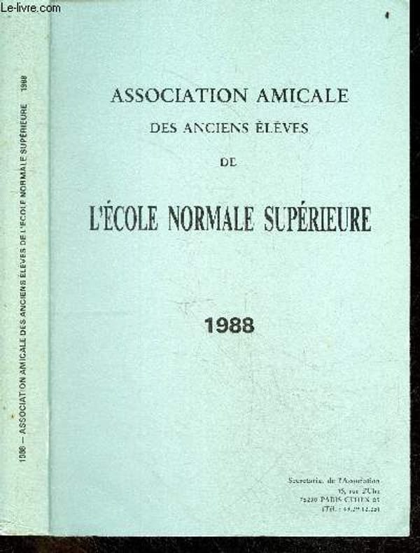 ASSOCIATION AMICALE DES ANCIENS ELEVES DE L'ECOLE NORMALE SUPERIEURE. 1988. In-8. Broché. Bon état, Couv. convenable, Dos satisfaisant, Quelques rousseurs. 490 PAGES. . . . Classification Dewey : 52-Annuaire