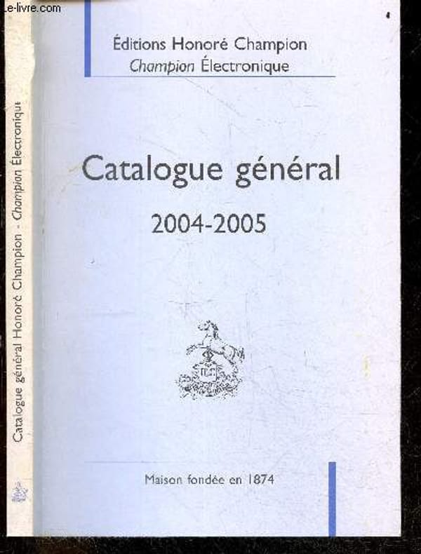 EDITIONS HONORE CHAMPION. 2004. In-8. Broché. Etat d'usage, Couv. convenable, Dos frotté, Quelques rousseurs. 202 PAGES - Texte sur deux colonnes - dos insolé / rousseurs sur la couverture. . . . Classification Dewey : 56-Catalogue