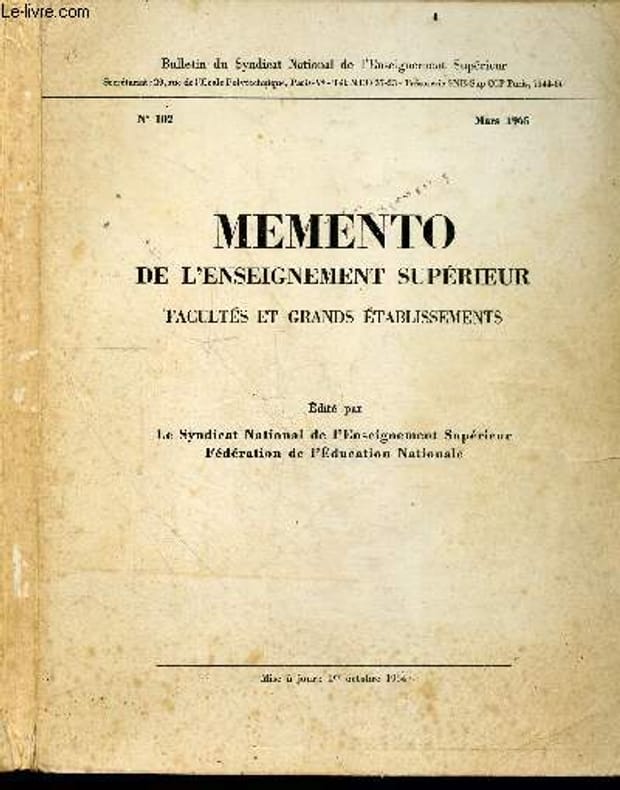SYNDICAT NATIONAL DE L'ENSEIGNEMENT SUPERIEUR FEDERATION DE L'EDUCATION NATIONALE. 1965. In-4. Broché. Etat d'usage, Couv. légèrement passée, Dos frotté, Quelques rousseurs. 175 PAGES - Avec une planche dépliante - Quelques annotations dans l'ouvrage sans conséquence sur la lecture + nombreuses annotations sur le 2e plat - Coiffes abîmées - 3 photos disponibles. . . . Classification Dewey : 370-Education