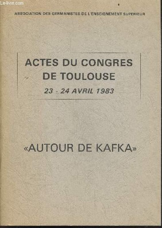MICHEL REFFET- HORST HOMBOURG- NICOLE PELLETIER- JEAN PIERRE DANES- JEANINE CHARUE FERRUCCI - LUTZ HENNER RICHTER- DOMINIQUE MESSAGER- YORAM BAR-DAVID - JUTTA AUBENQUE- BERNARD LORTHOLARY- CLAUDINE RABOUIN // Situation de la litterature allemande a prague a l'epoque de kafka / reflexions sur la theorie du triple ghetto- Litterature pragoise et conscience linguistique au temps de kafka- La machine a tuer dans la Colonie penitentiaire de kafka- Kafka et Martin Walser- Kafka et Robert Walser- Die rezeption franz kafkas durch die schrift steller der deutschen demokratischen republik- Un cas de non-reception: franz kafka en RDA- Sein = ihmgehoren - Jeu & enjeu du Proces- Entfremdung und verfremdung in kafkas Verwandlung- En marge d'une edition critique: le travail de l'ecrivain dans Le Chateau Classification Dewey : 830-Littératures des langues germaniques
