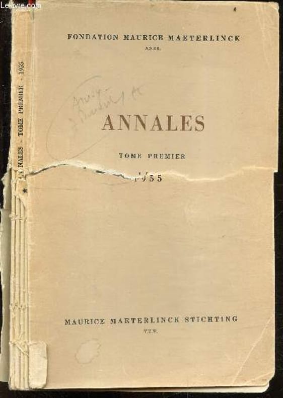 Fondation Maurice Maeterlinck / MAURICE MAETERLINCK STICHTING. 1956. In-8. Broché. Etat passable, 1er plat abîmé, Dos abîmé, Quelques rousseurs. 127 PAGES - Grande partie du dos manquante / 1er plat déchiré en deux / dos fané : couverture volante - Quelques annotations sans conséquence sur la lecture - En francais et en anglais. . . . Classification Dewey : 840-Littératures des langues romanes. Littérature française
