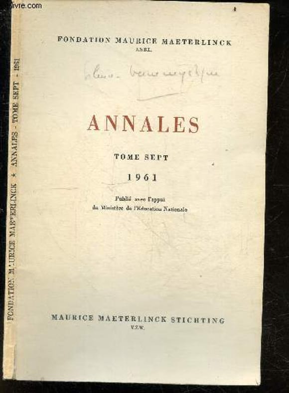 Fondation Maurice Maeterlinck / MAURICE MAETERLINCK STICHTING. 1962. In-8. Broché. Etat d'usage, Couv. convenable, Coiffe en pied abîmée, Quelques rousseurs. 85 PAGES- Nombreuses annotations, dans et sur l'ouvrage, sans conséquence sur la lecture. . . . Classification Dewey : 840-Littératures des langues romanes. Littérature française