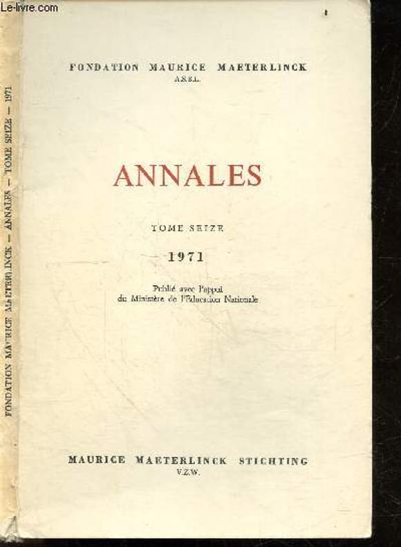 Fondation Maurice Maeterlinck / MAURICE MAETERLINCK STICHTING. 1971. In-8. Broché. Etat d'usage, Couv. convenable, Coiffe en pied abîmée, Intérieur frais. 131 PAGES - Nombreuses annotations/ phrases surlignées au feutre, sans conséquence sur la lecture - Dos frotté. . . . Classification Dewey : 840-Littératures des langues romanes. Littérature française