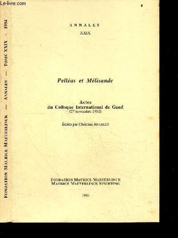 "CHRISTIAN ANGELET- PAUL GORCEIX- SABBE HERMAN- DELPHINE CANTONI- SYLVIE SAUVAGE- ROBERT O.J. VAN NUFFEL /// ""Pelleas et Melisande"" : Vsevolod Meyerhold et le theatre de la convention / des brouillons de maeterlinck au livret de debussy- Pelleas et melisande & l'esthetique du theatre symboliste: mise en scene et dramaturgie- La poetique du silence dans Pelleas & melisande- Le mythe feminin chez maeterlinck et alain-fournier, de melisande a yvonne de galais- Maeterlinck, Schoenberg et Debussy ou la litterature au carrefour de l'histoire musicale - Necrologie de Joseph Hanse- Bibliographie : Novalis, fragments precede de Les disciples a sais ... Classification Dewey : 840-Littératures des langues romanes. Littérature française"