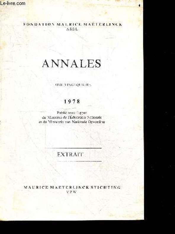 Fondation Maurice Maeterlinck / MAURICE MAETERLINCK STICHTING. 198. In-8. Broché. Etat d'usage, Couv. convenable, Dos satisfaisant, Quelques rousseurs. Paginé de 35 à 56 - Rousseurs sur la couvertue. . . . Classification Dewey : 840-Littératures des langues romanes. Littérature française