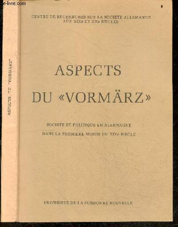 "De la restauration a la revolution de 1848 (ou l'on voit l'allemagne entrer dans l'ere industrielle) par Joseph Rovan- La crise du rhin et le malentendu francoallemand 1839/1841 par Marc Thuret- L'expression de la condition ouvriere dans la litterature du Vormarz, par Marie Claire Hoock-Demarle- Portrait de classe avec paysans, etude sur le film de Volker Schlondorff ""La soudaine richesse des pauvres gens de kombach"", par Gilbert Guillard- La population allemande de 1830 a 1848, les premices d'une revolution demographique, par Michel Hubert- Universites, professeurs et etudiants en allemagne dans la 1ere moitie du XIXe siecle, par Gilbert Krebs Classification Dewey : 97.2-Dédicace, envoi"