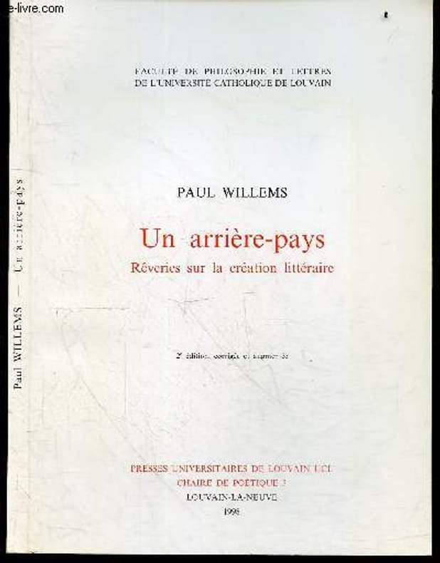 Un arriere-pays, reveries sur la creation litteraire - Faculte de philosophie et letttres de l'Universite catholique de Louvain - 2e edition corrigee & augmentee- Les initiations: l'eau, l'oiseau, l'appel- Les mythes- Rencontre dans une tempete de neige- De l'ecriture a la parole, le livre, le theatre- L'oeuvre de paul willems- Avant propos de Michel Otten Classification Dewey : 809-Histoire, littérature