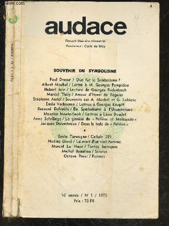 Recueil litteraire trimestriel / SOMMAIRE : Souvenir du symbolisme- - Que fut le symbolisme, amour d'henry de regnier, souvenirs sur albert mockel & georgette leblanc, lettres a georges knopff, du symbolisme a l'unanimisme (notes sur emile verhaeren), la genese de Pelleas et melisande par anne schillings, dans le halo de Pelleas par jacques dolembreux / Sur un mot de franz hellens par arsene soreil, Arsene soreil ou le tranchant du verbe par marie denis / poesie : michel beaulieu, octave prour / nouvelles : emile terwagne, nadine giard / meditations : marcel la haye / chronique : quelques ecrivains de belgique par marie jose hervyns ... Classification Dewey : 70.49-Presse illustrée, magazines, revues
