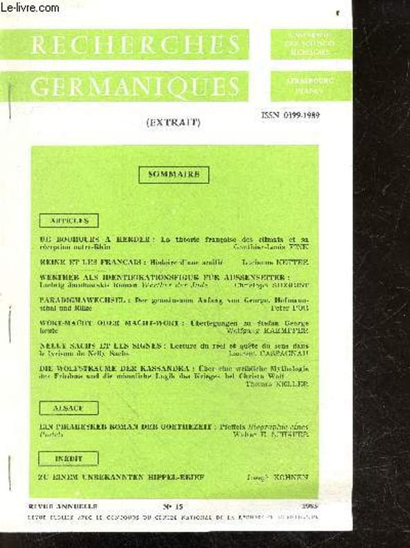 UNIVERSITE DES SCIENCES HUMAINES DE STRASBOURG. 1985. In-8. Broché. Etat d'usage, Couv. convenable, Dos satisfaisant, Intérieur frais. 27 PAGES (maintenues par 3 agrafes) paginées de 95 à 122 - En allemand - Avec envoi de l'auteur, Peter Por, à l'attention de Paul Gorceix, germaniste francais, voir 2e photo. . . . Classification Dewey : 97.2-Dédicace, envoi