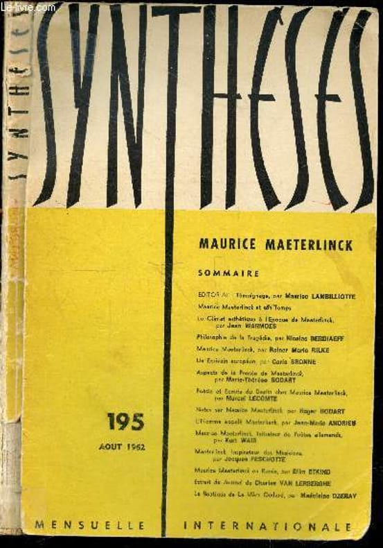 MENSUELLE INTERNATIONALE / SOMMAIRE : Maurice Maeterlinck - Le climat esthetique a l'epoque de maeterlinck par Jean Warmoes- Philosophie de la tragedie par Nicolas Berdiaeff- Poesie & ecoute du destin chez maeterlinck par marcel lecomte- Maeterlinck inspirateur des musiciens par Roger Bodart- Maeterlinck en russie par Efim Etkind- Maeterlin initiateur de poetes allemands par Kurt Wais- Maeterlinck et son temps, temoignage par maurcie lambilliotte- L'homme appele maeterlinck par jean-marie Andrieu, Maurice Maeterlinck par Rainer Maria Rilke ... Classification Dewey : 70.49-Presse illustrée, magazines, revues