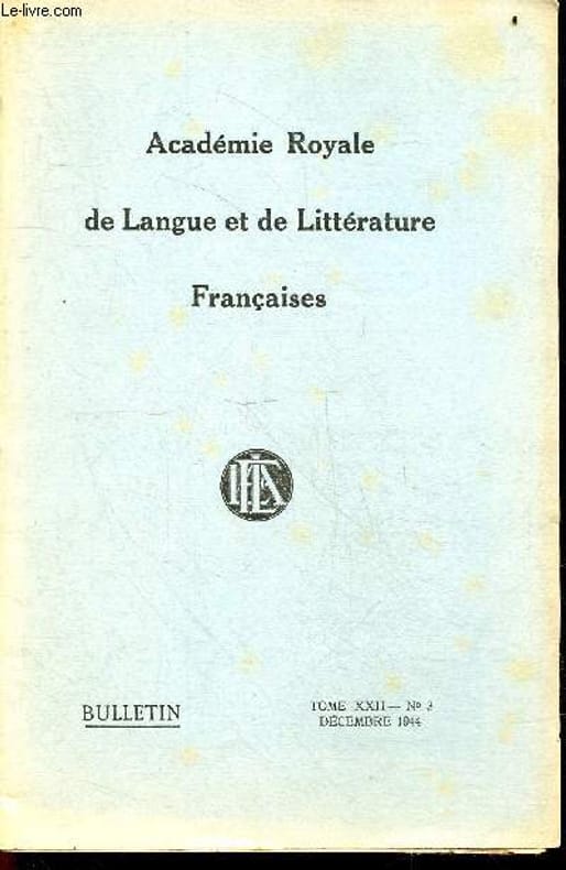 Academie Royale de Langue et de Litterature francaises. 1944. In-8. Broché. Etat d'usage, Couv. partiel. décollorée, Dos satisfaisant, Quelques rousseurs. Paginé de 107 à 130 - Rousseurs sur la couverture. . . . Classification Dewey : 70.49-Presse illustrée, magazines, revues