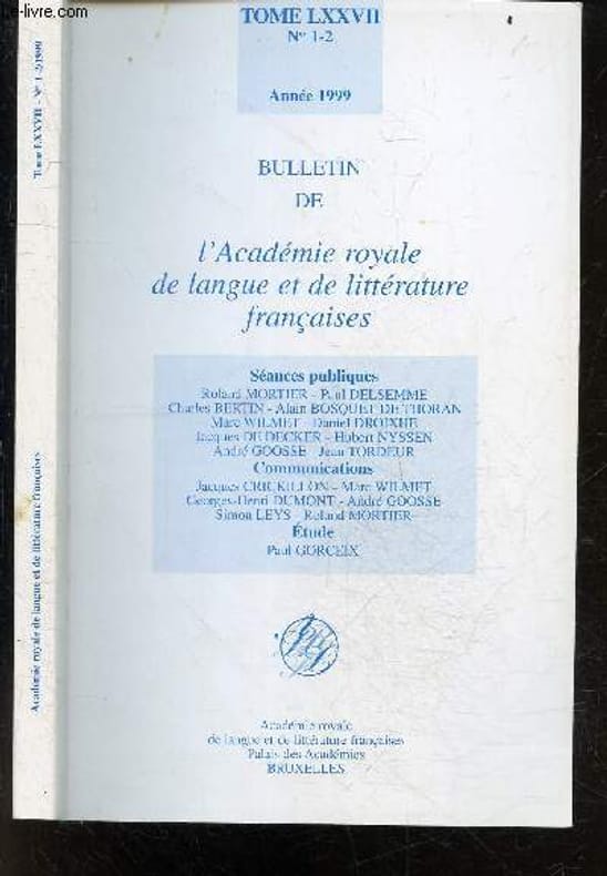 Academie Royale de Langue et de Litterature francaises. 1999. In-8. Broché. Etat d'usage, Couv. convenable, Dos satisfaisant, Intérieur frais. 227 PAGES - Quelques rousseurs sur la couverture. . . . Classification Dewey : 70.49-Presse illustrée, magazines, revues