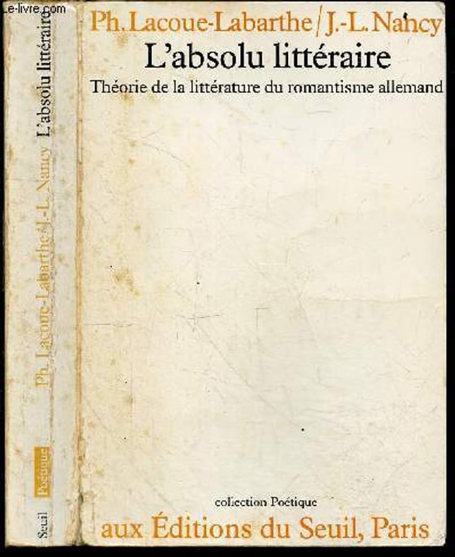 LACOUE-LABARTHE PHILIPPE- NANCY JEAN LUC- LANG ANNE-MARIE Classification Dewey : 830-Littératures des langues germaniques