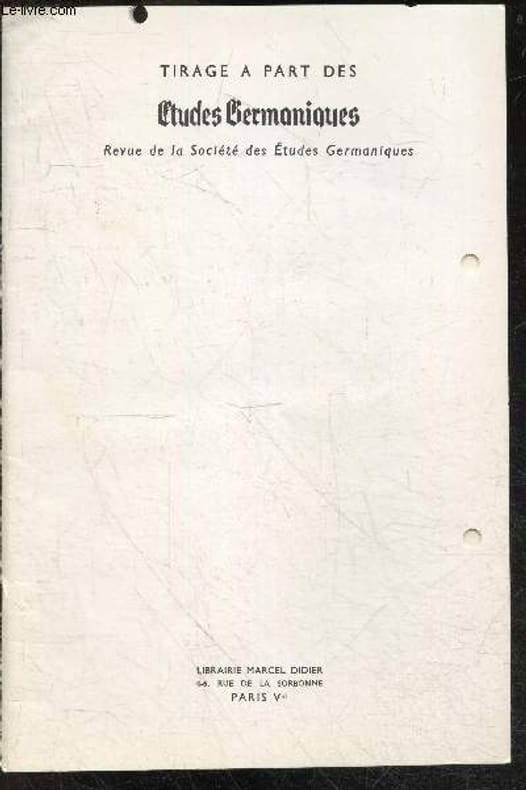 MARCEL DIDIER / REVUE DE LA SOCIETE DES ETUDES GERMANIQUES. 1971. In-8. Broché. Bon état, Couv. convenable, Dos satisfaisant, Intérieur frais. Paginé de 18 à 31 - Quelques perforations sur la couverture + en tranche de tête et sur la charniere intérieure, en marge du texte / sans conséquence sur la lecture - Avec envoi de l'auteur, Bernard Gorceix, à l'attention de son frere Paul Gorceix, voir 2e photo. . . . Classification Dewey : 97.2-Dédicace, envoi