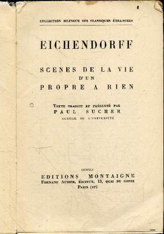 MONTAIGNE. Non daté. In-12. Broché. Etat passable, Plats abîmés, Dos abîmé, Quelques rousseurs. 120 PAGES - Texte en francais et allemand en regard - Texte traduit et presente par Paul Sucher- 1er plat volant - 2e plat volant - Manques au dos - Quelques annotations au crayon à papier, sans conséquence sur la lecture. . . . Classification Dewey : 830-Littératures des langues germaniques
