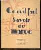 Ce qu'il faut savoir du Maroc - Brochure de documentation generale a l'usage des touristes- Geographie du maroc, richesses du sol & du sous sol marocain, colonisation, outillage economique, place economique du maroc dans le monde, tourisme, role social de la france au maroc, carte economique du maroc Classification Dewey : 964-Maroc