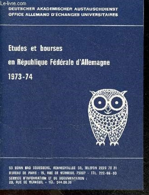 OFFICE ALLEMAND D'ECHANGES UNIVERSITAIRES / DEUTSCHER AKADEMISCHER AUSTAUSCHDIENST. 1973. In-12. Broché. Bon état, Couv. convenable, Dos satisfaisant, Intérieur frais. 32 PAGES. . . . Classification Dewey : 370-Education
