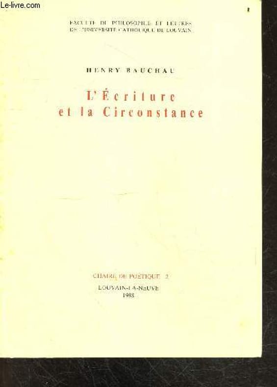 FACULTE DE PHILOSOPHIE ET LETTRES DE L'UNIVERSITE CATHOLIQUE DE LOUVAIN. 1988. In-8. Broché. Etat d'usage, Couv. convenable, Dos satisfaisant, Intérieur frais. 82 PAGES - Petites annotations à l'encre sur la derniere page de garde - Quelques rousseurs sur le dos et le 2e plat. . . . Classification Dewey : 840-Littératures des langues romanes. Littérature française