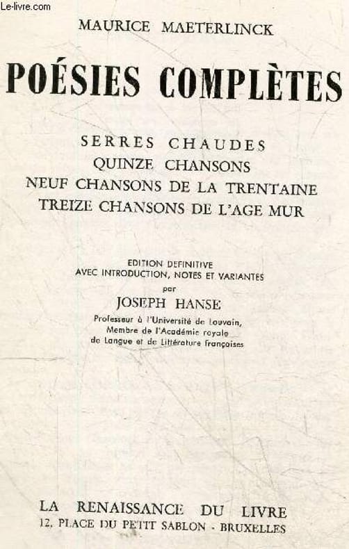 LA RENAISSANCE DU LIVRE. 1965. In-12. Broché. Etat passable, 1er plat abîmé, Dos abîmé, Quelques rousseurs. 304 PAGES - 1er plat manquant / Manques au dos - Adhésif au dos et sur le 2e plat - Nombreuses annotations + quelques phrases surlignées au feutre, le tout sans conséquence sur la lecture - 2 photos disponibles. . . . Classification Dewey : 841-Poésie