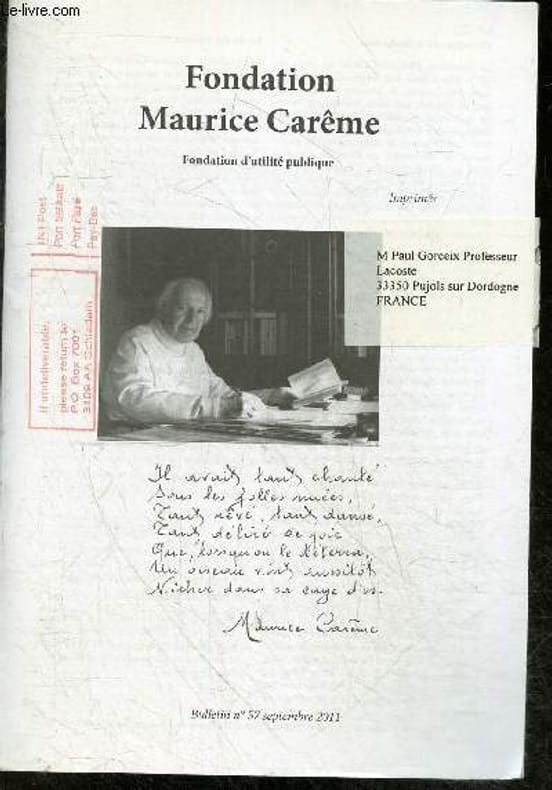 FONDATION MAURICE CAREME. 2011. In-8. Broché. Etat d'usage, Couv. convenable, Dos satisfaisant, Quelques rousseurs. 30 PAGES - Etiquette + tampon postal + rousseurs sur le 1er plat - Quelques illustrations noir/blanc, dans le texte. . . . Classification Dewey : 70.49-Presse illustrée, magazines, revues