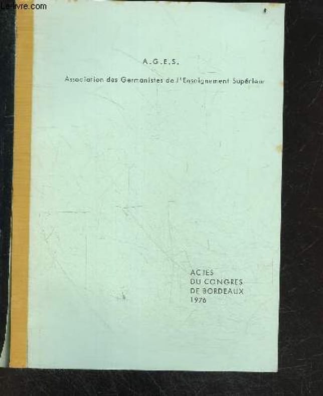 ASSOCIATION DES GERMANISTES DE L'ENSEIGNEMENT SUPERIEUR / a.g.e.s. / ages. 1976. In-8. Broché. Etat d'usage, Couv. convenable, Dos fané, Quelques rousseurs. 201 PAGES - En francais et en allemand. . . . Classification Dewey : 830-Littératures des langues germaniques