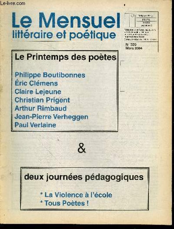 SOMMAIRE: Le printemps des poetes : philippe boutibonnes, eric clemens, claire lejeune, christian prigent, arthur rimbaud, jean pierre verheggen, paul verlaine- Journees pedagogiques : la violence a l'ecole / tous poetes - Litterature: fabien abrassart, marcel bealu, jeanne benguigui, benoit casas, alain wexler, paul louis rossi, thiery martin scherrer, andre du bouchet, pierre chappuis, ...- Entretiens: dany robert dufour, nathalie gassel, armel job, jean luc marion, jean clet martin, monique schneider,...- Spectacles: pattes de velours et bas de soie, le requiem, plus d'une phrase pour ma mere, la mere allee avec le soleil ... Classification Dewey : 70.49-Presse illustrée, magazines, revues