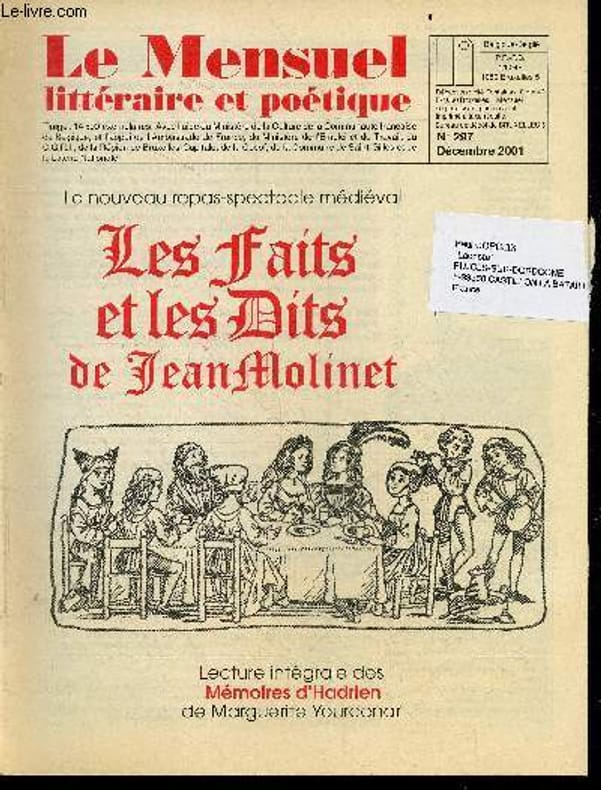 SOMMAIRE: Repas spectacle medieval : Les faits et les dits de Jean Molinet- Lecture integrale des Memoires d'Hadrien de marguerite yourcenar- Marc blanchet, michel bourçon, yves broussard, francoise delcarte, clara malroux, jeannine worms, vincent paches, gilbert mercier, isabelle lebrat, ketty kupler, michel jourdain, jerome game, louis rene des forets, ..- Entretiens: yves caldor, prince radu de hohenzollern, pierre rodrigo, ammenuele sandron, quel citoyen pour quelle cité ?, ... Classification Dewey : 70.49-Presse illustrée, magazines, revues