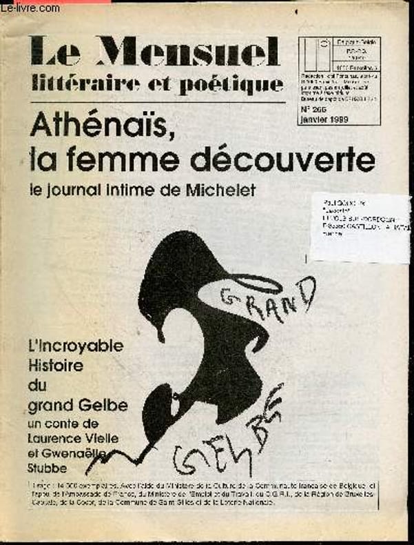 SOMMAIRE: Athenais, la femme decouverte le journal intime de michelet- L'incroyable histoire du grand gelbe un conte de laurence vielle et gwenaelle stubbe- Fernando pessoa, pierre bearn, bernard simeone, alain suied, blanca varela, pierre bettencourt, paul nouge, goerges rose, roman gomez de la serna, jose bento, jean michel bongiraud... - Livres d'art: forger l'espace, zao wou-ki, ecrits sur l'art, derives botaniques, toulouse lautrec, roger frezin- Entretiens: chake matossian, denys louis colaux & le fram, genevieve berge & patrick drevet, dany robert dufour, michel meyer- Spectacle: proust portraits et regards, l'atelier des songes ... Classification Dewey : 70.49-Presse illustrée, magazines, revues