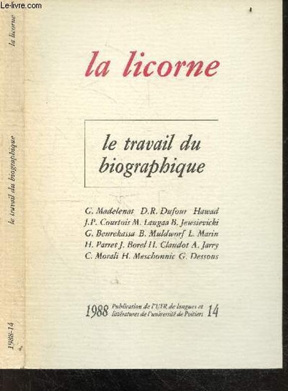 "Sommaire : Le travail du biographique- recit de vie t reve de l'ecriture authentique- reve et autobiographie (notes)- echographies, notes sur l'ecriture, l'image et la voix dans le recit de vie: la conversion d'augustin- le primitivisme vers la forme-sujet- allegorie de l'humanite dans la voix: Hommes allemands de walter benjamin- saint john perse: la vie pseudonyme- auteur hors texte, auteur dans le texte, vigny et l'ecriture d'eloa- l'identite tifinar' (entretien)- la transhumance des souffles- traces- inscrire: la vie- ""je vous dirai qui je suis...""- un roman de la biographie: les hommes de papier de william golding - ""ma vie"" comme effet de discours - un patient parle - ... /// MORALI- BOREL- LAUGAA- DESSONS- MADELENAT- PARRET- MESCHONNIC- COURTOIS- JARRY- HAWAD- CLAUDOT- JEWSIEVICKI- BENREKASSA- ... Classification Dewey : 70.49-Presse illustrée, magazines, revues"