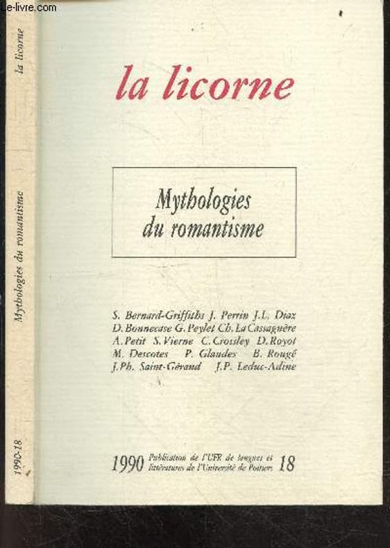 Sommaire : Mythologies du romantisme- parcours mythiques a travers le romantisme francais- mythe & symboles dans la pensee allemande, de herder a schelling- mythes, mythologies et savoirs dans la france du XIXe siecle: de l'oubli au discredit- aspects de la genese d'un discours mythique dans l'oeuvre d'emile zola- mythes nationaux et esprit revolutionnaire en france & angleterre a l'epoque romantique- george sand et le mythe revolutionnaire- balzac et ses mythologies de l'ecrivain- dumas pere dramaturge en face du mythe de napoleon- cave amantem, la carmen mythique de prosper merimee- le mythe de satan du romantisme au decadentisme- de pocahontas a l'oncle sam: elements du folklore de la jeune republique americaine- mytho-logies du romantisme anglo americain- transformations americaines du mythe arcadien: longfellow & les peintres luministes- le mythe comme ecriture imaginaire de l'histoire chez les poetes romantiques anglais ... /// ALAIN PETIT- CERI CROSSLEY- SIMONE VIERNE- MAURICE DESCOTES- GLAUDES PIERRE- PEYLET GERARD- DANIEL ROYOT- DENIS BONNECASE- BERTRAND ROUGE- JOSE LUIS DIAZ- JACQUES PHILIPPE SAINT GERAND- JEAN PIERRE LEDUC ADINE- CHRISTIAN LA CASSAGNERE- EDWARD J. GEARY- JEAN PERRIN- BERTHIN CHRISTINE Classification Dewey : 70.49-Presse illustrée, magazines, revues