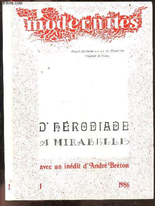 Les pages marquees de craies des magazines par André Breton- Miroir d'Herodiade par Yves Vadé- Résonances fin de siecle, le nouveau Newton & le cas individuel par Michel Mercier- Mirabelle dans le panorama, notes pour une lecture d'anicet - Ecritures automatiques, ecriture romanesque: imaginaire & ecriture chez aragon a l'aube des annees vingt par Daniel Briolet Classification Dewey : 70.49-Presse illustrée, magazines, revues