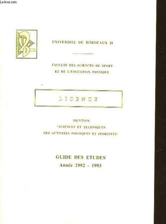 "Université de Bordeaux II - Faculte des sciences du sport et de l'éducation physique. Mention ""Science et techniques"" des activités physiques et sportives"". Classification Dewey : 370-Education"