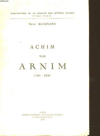 Publication de la faculté des lettres d'Alger. Classification Dewey : 830-Littératures des langues germaniques