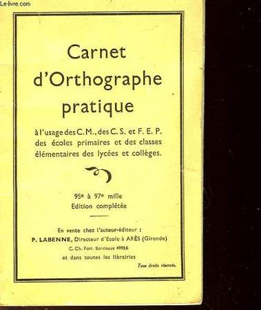 P. LABENNE - 95° A 97° MILLE. 1949. In-12. Broché. Bon état, Couv. convenable, Dos satisfaisant, Intérieur frais. 64 pages. Manque les premières pages, débute à la page 25.. . . . Classification Dewey : 372.6-Livre scolaire : français