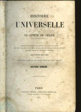 GARNIER FRERES - 9° EDITION. 1853. In-8. Relié demi-cuir. Etat d'usage, Couv. convenable, Dos satisfaisant, Quelques rousseurs. 738 pages. Quelques gravures en noir et blanc hors texte protégées par des serpentes. dos : cuir vert, roulette, titre en doré.. . . . Classification Dewey : 900-GEOGRAPHIE, HISTOIRE, SCIENCES AUXILIAIRES DE L'HISTOIRE