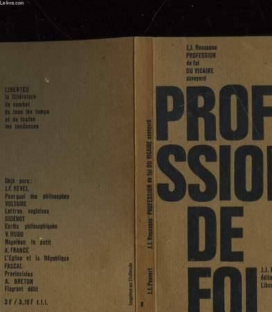 Introduction et notes de Hervé Palcou. Publiée sur une copie écrite de la main de J.J. Rousseau citoyen de Genève, et déposée par lui-même entre les mains de l'éditeur. Classification Dewey : 840.08-XIX ème siècle