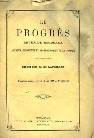 CHEZ M. CH. LATERRADE. 1867. In-8. Broché. Etat d'usage, 1er plat abîmé, Dos satisfaisant, Mouillures. Paginé de 258 à 300.. . . . Classification Dewey : 908.447-Régionalisme : Aquitaine