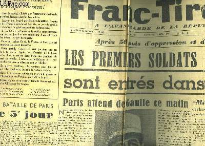 FRANC-TIREUR. 1944. In-Folio. En feuillets. Bon état, Couv. convenable, Dos satisfaisant, Intérieur frais. 2 pages par numéros. Quelques illustrations en noir et blanc dans le texte.. . . . Classification Dewey : 70.1-Journaux