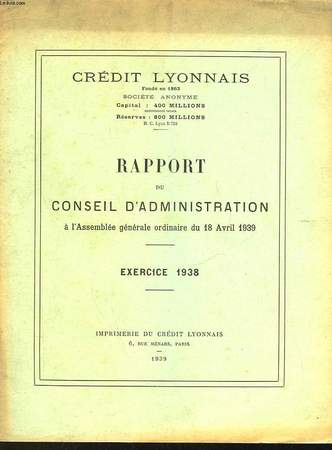 IMP. DU CREDIT LYONNAIS. 1939. In-8. Broché. Etat d'usage, Couv. défraîchie, Dos satisfaisant, Intérieur frais. 18 pages.. . . . Classification Dewey : 300-SCIENCES SOCIALES