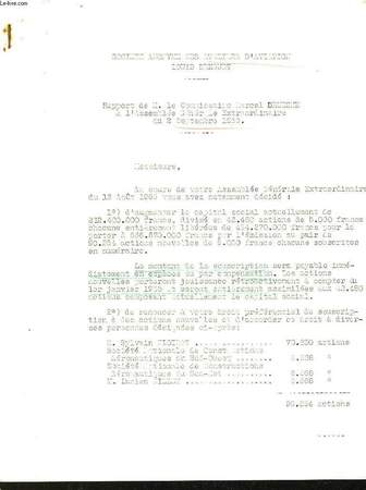 Rapport de M. Le Commissaire Marcel Druesne à l'assemblée Générale extraordinaire du 2 septembre 1955, Résolutions soumises à l'assemblée générale extraordinaire du 2 septembre 1955. Classification Dewey : 330-Economie